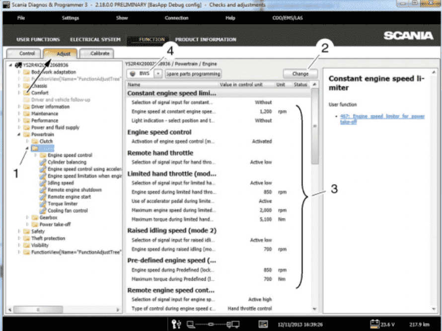 The Function View in SCANIA SDP3 allows you to check, adjust, and calibrate systems at a function level. When you switch between main tabs, SDP3 automatically navigates to the corresponding level in the new tab. Any modifications made at the function level are applied across all relevant control units simultaneously.
