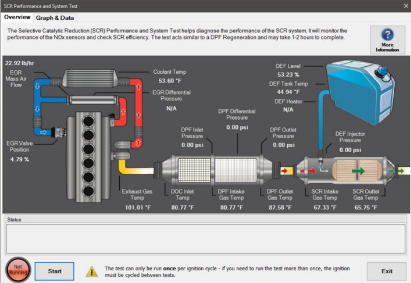 NOTE: This test may take 1 – 2 hours to complete depending on the state of the after treatment system.