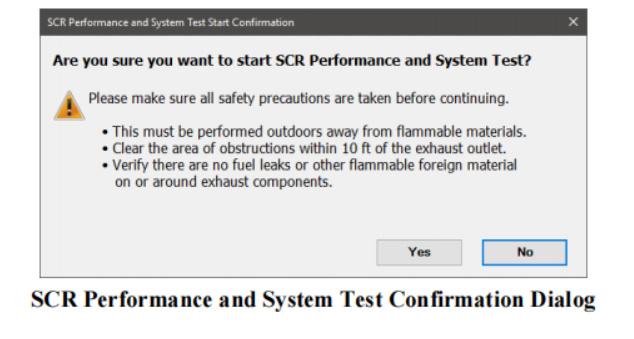 The Selective Catalytic Reduction (SCR) Performance and System Test helps diagnose issues with the performance of the SCR system. It monitors the performance of the NOx sensors and checks SCR efficiency.