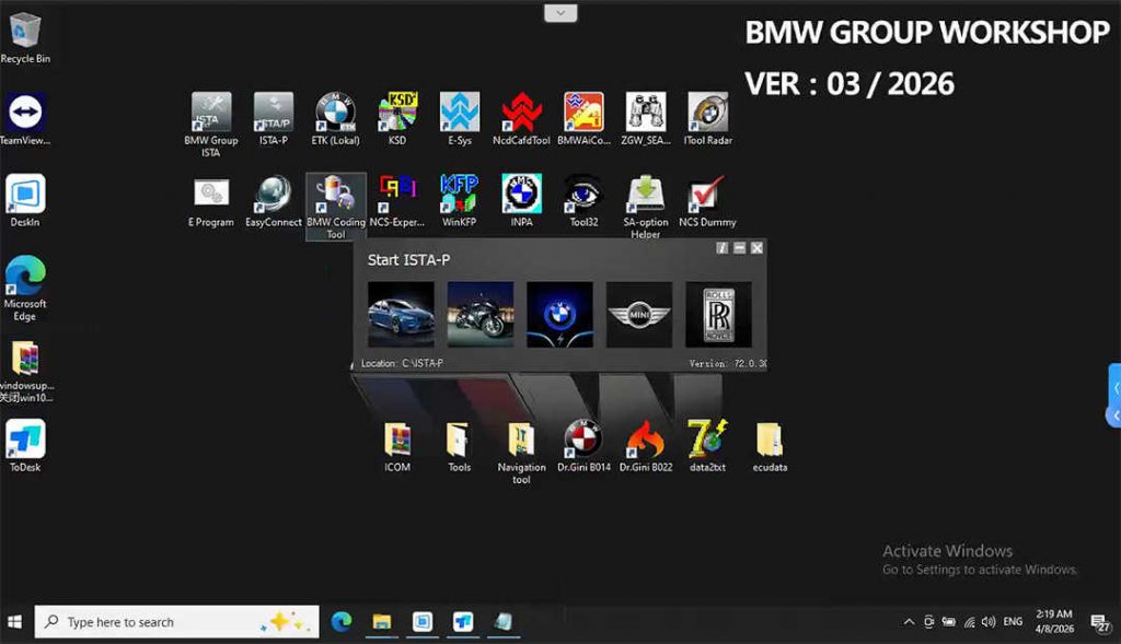 ISTA – P: 3.72.0.300 with Engineer Programming,supports the programming of BMW motorcycles and electric vehicles can program F/G/I/K chassis for car (through the ICOM, not other cable )